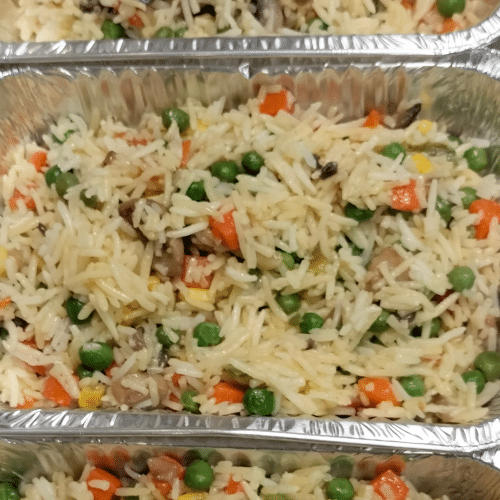 Vegetarisch. RIjst, knoflook, tomaat en uien
